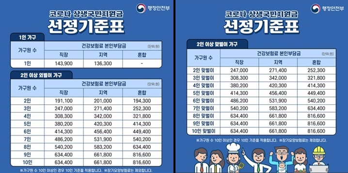5차 재난지원금은 국민재난지원금으로 국민지원금 건강보험료(건보료)산정 기준표 하위 88% 국민이라면 신청할 수 있습니다. 코로나 상생 국민지원금은 기준을 확인해야합니다. 본인의 2021년 6월 건강보험료 납부확인서와 산정 기준표를 확인하고 비교할 수 있습니다.